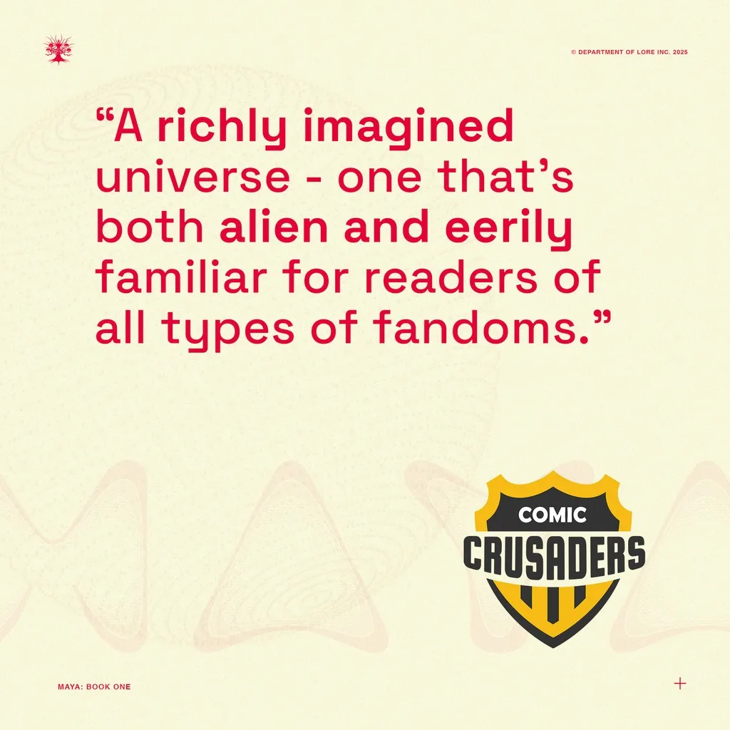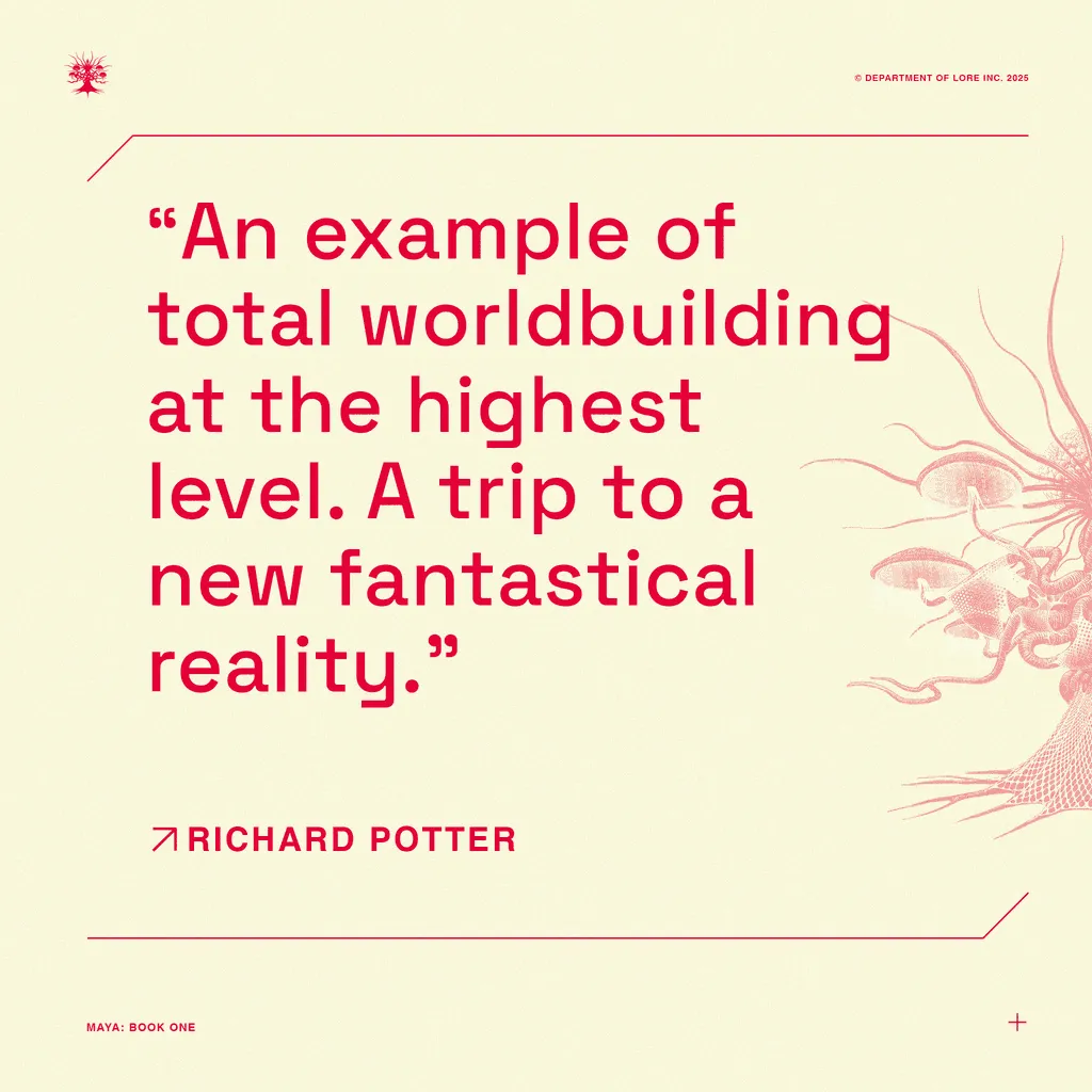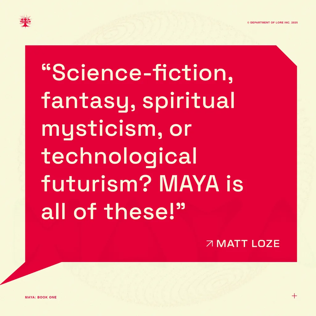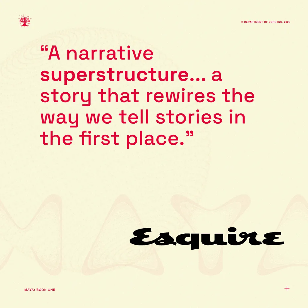 Department of Lore is a studio pioneering neo-mythologies - interconnected, multi-format, large-scale universes that resonate globally. MAYA is our flagship property, designed from day one for transmedia expansion.